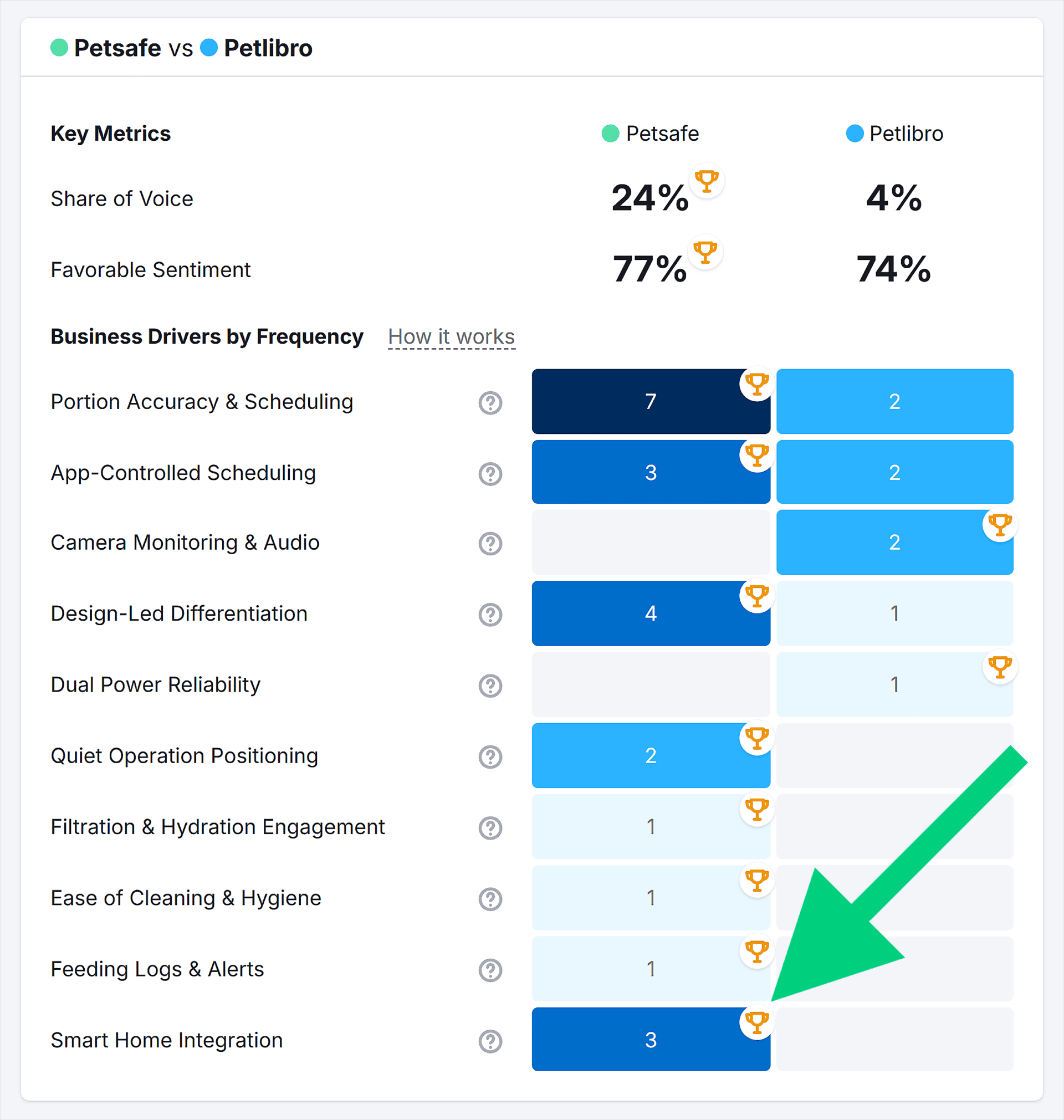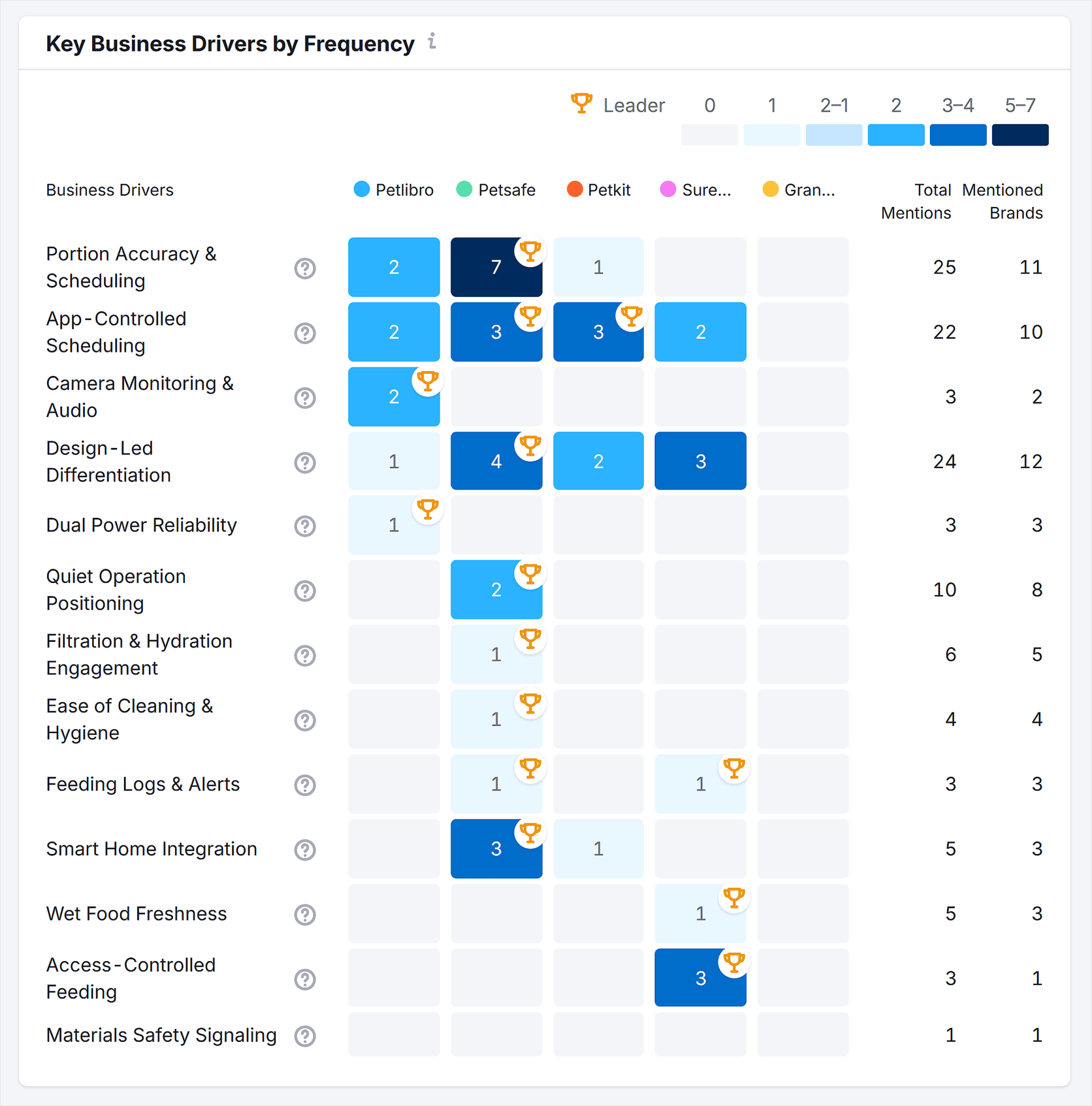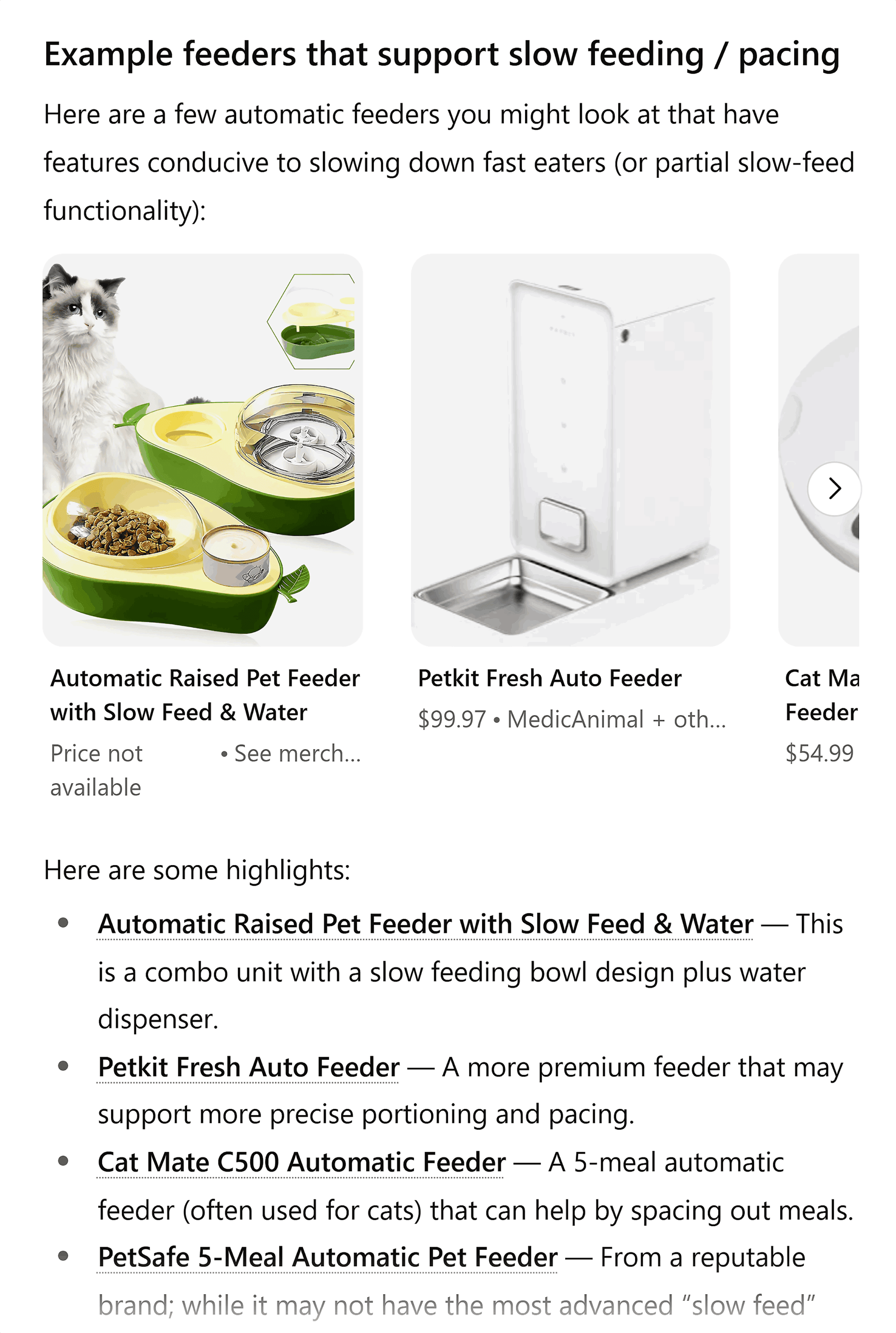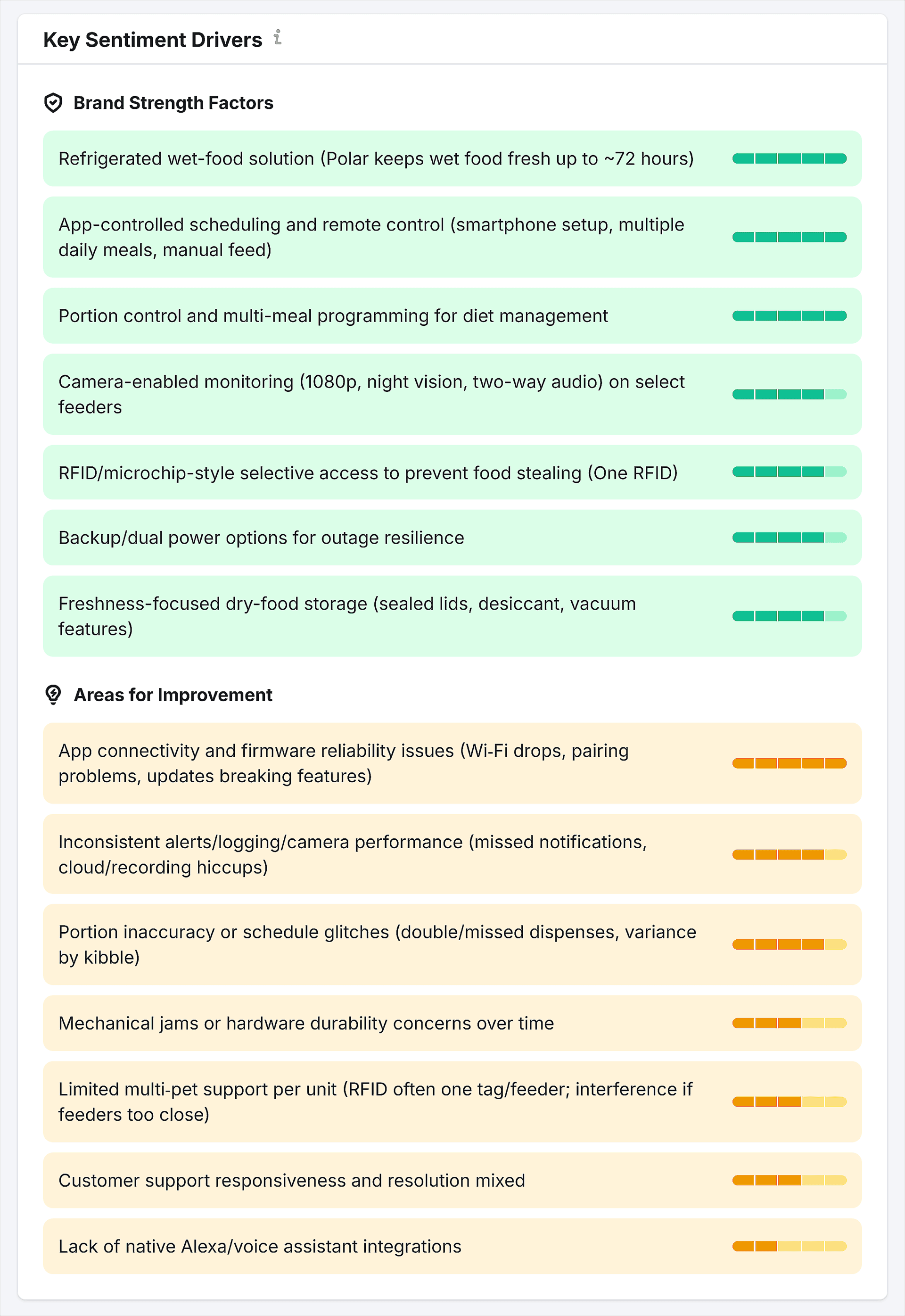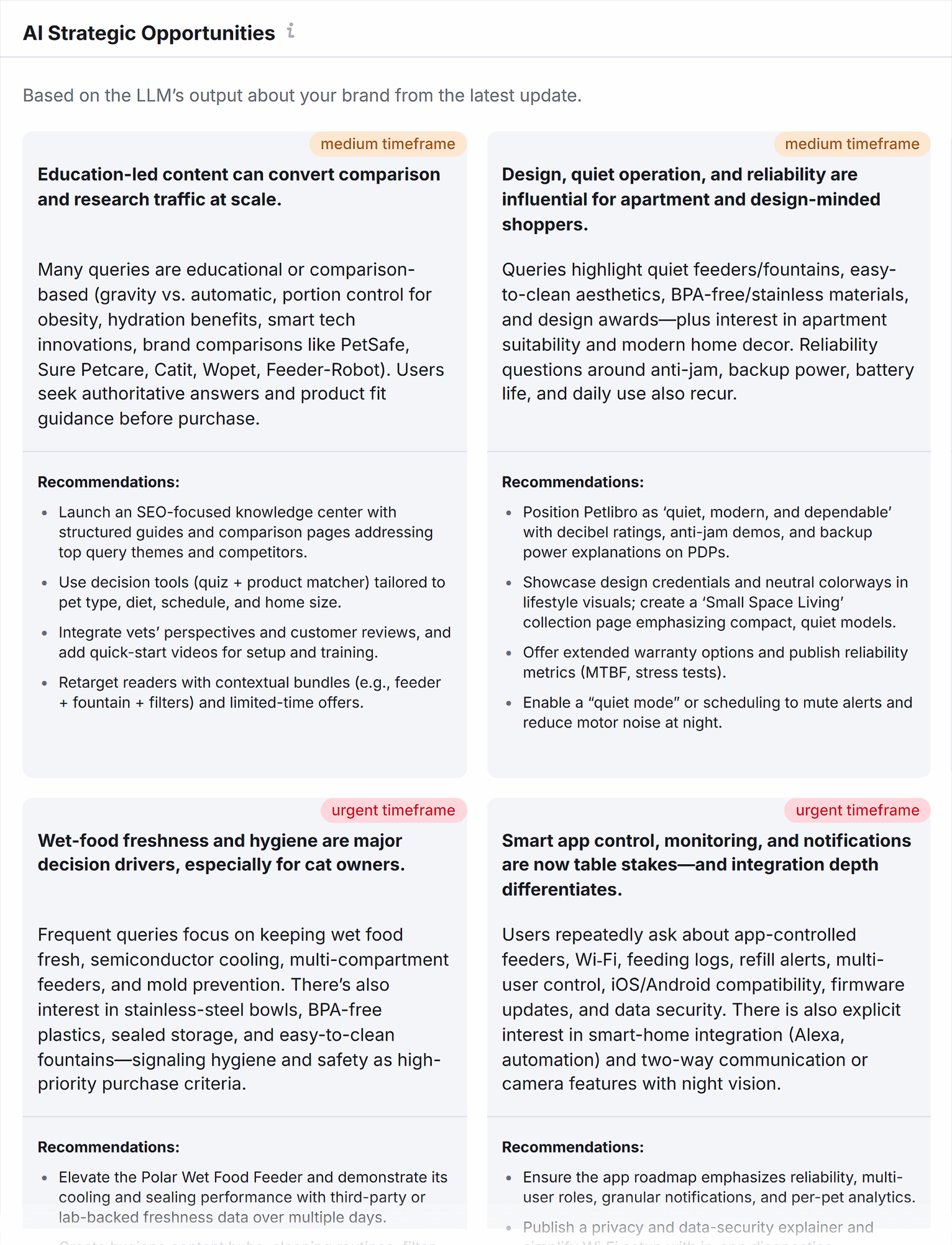 This makes the brand more likely to appear in AI search responses when a user is looking for smart pet feeders with features like smart home integrations.