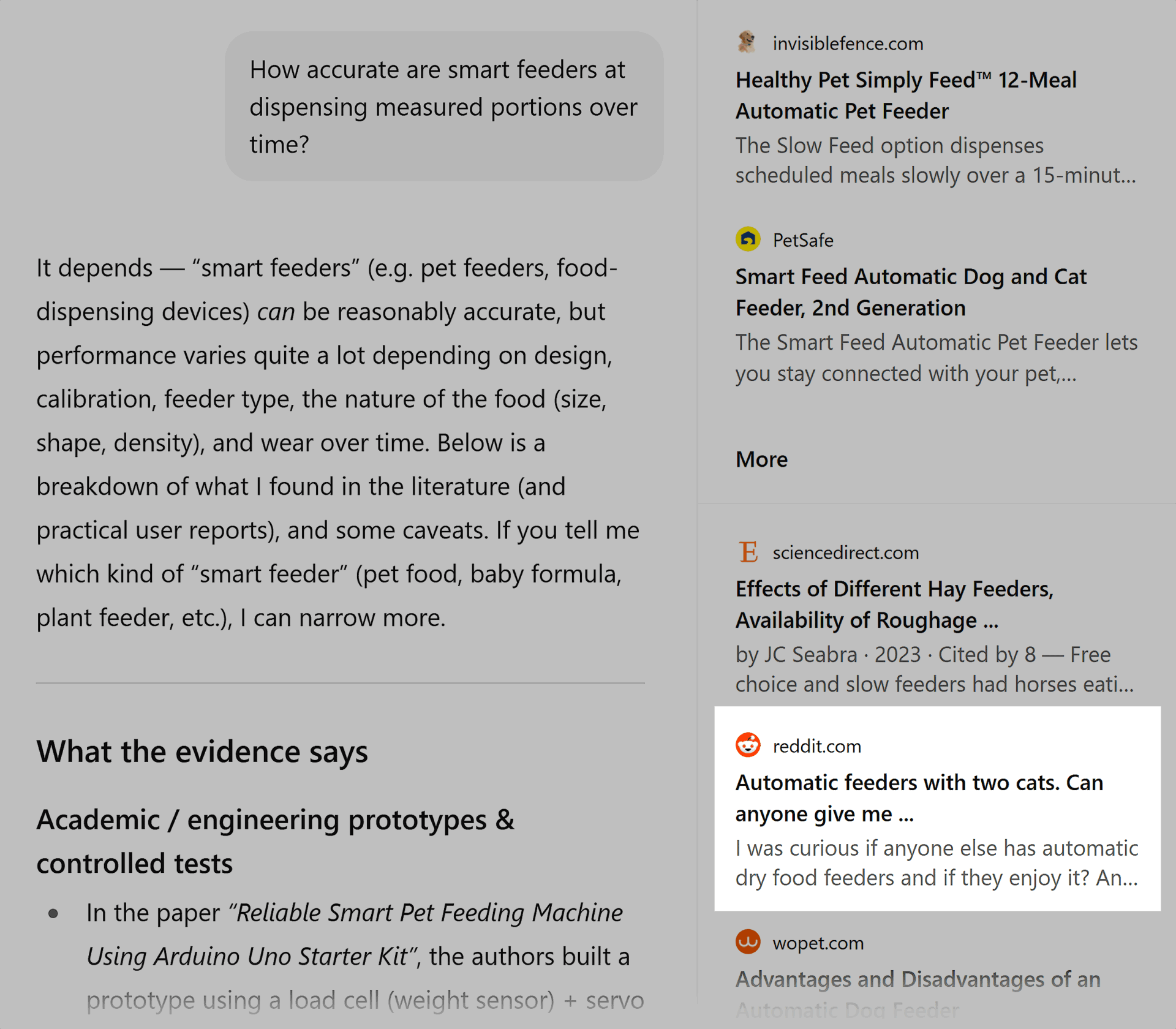 This next one is a more likely candidate, and we can see PetSafe (a competitor) gets cited as a source. (And Reddit appears again too.)