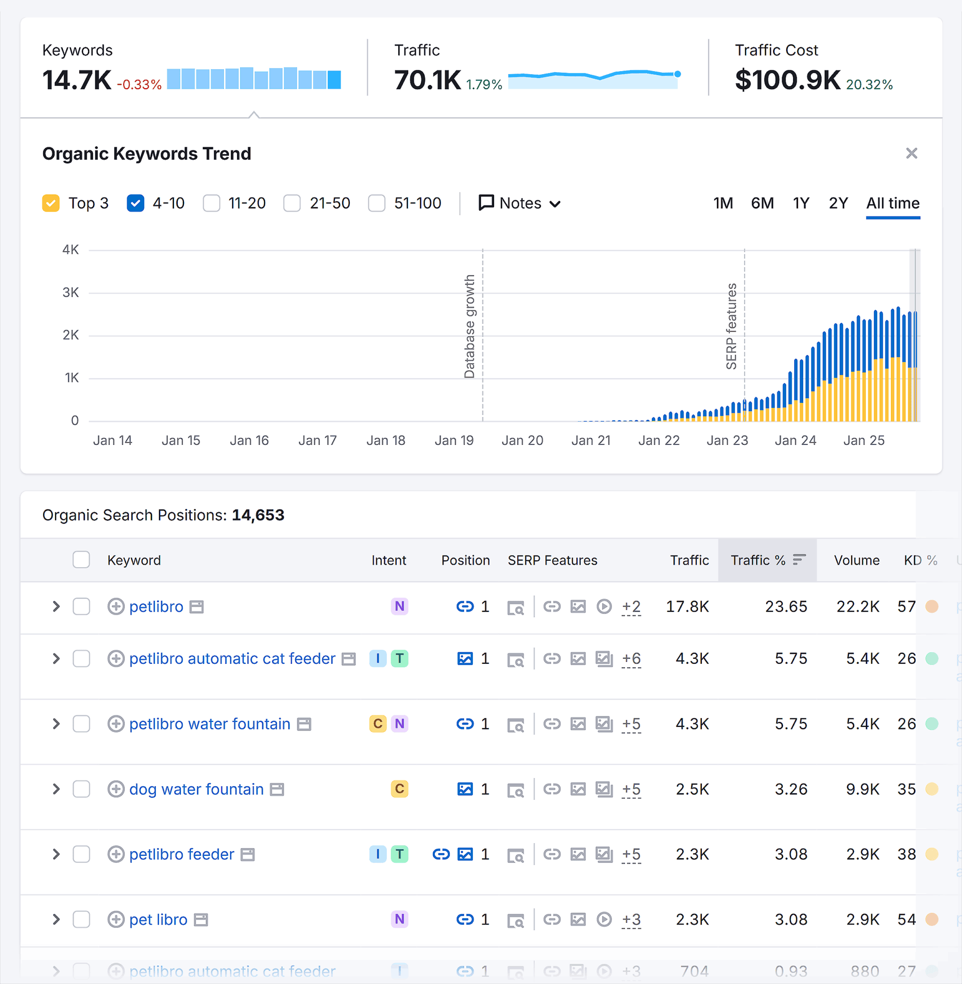 I have zero affiliation with Petlibro. This isn’t sponsored. I just wanted a brand that’s growing fast and has enough search demand to make this example interesting.