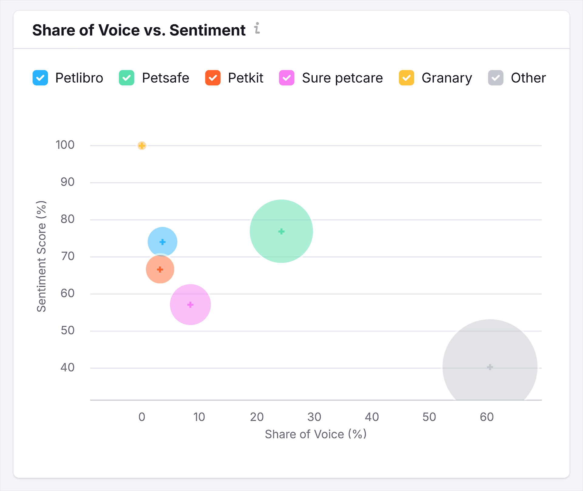 On the right side, you can see the Share of Voice versus Sentiment Score.