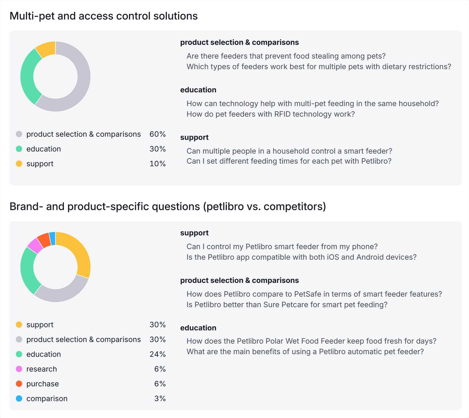 They could also update their product pages to highlight that their feeders support different portion sizes for morning and evening meals, and add an FAQ section answering common branded questions.