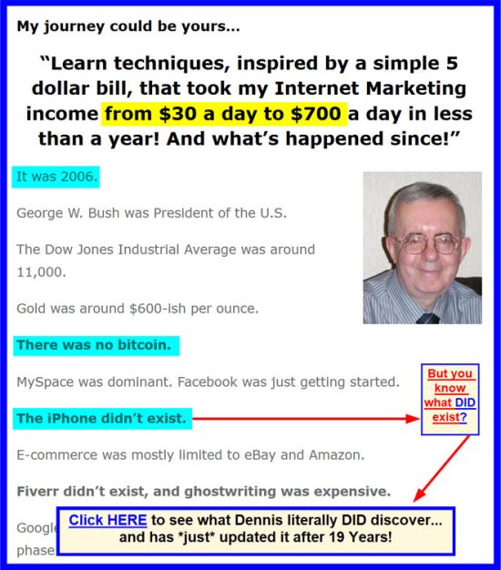 And ever since then, Dennis has been walking the walk and talking the talk and teaching anyone and everyone how to make money online.