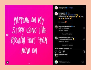 How do you know if you’ve made it? A sure sign that your social media presence is keenly felt around the world is when Instagram co-opts your aesthetic and bakes it into the system. That’s what happened in July 2025, when Spanish singer Rosalía (26.8m followers) became the progenitor of a distinctive new Instagram font, Rosalía.vt, based on her own handwriting.