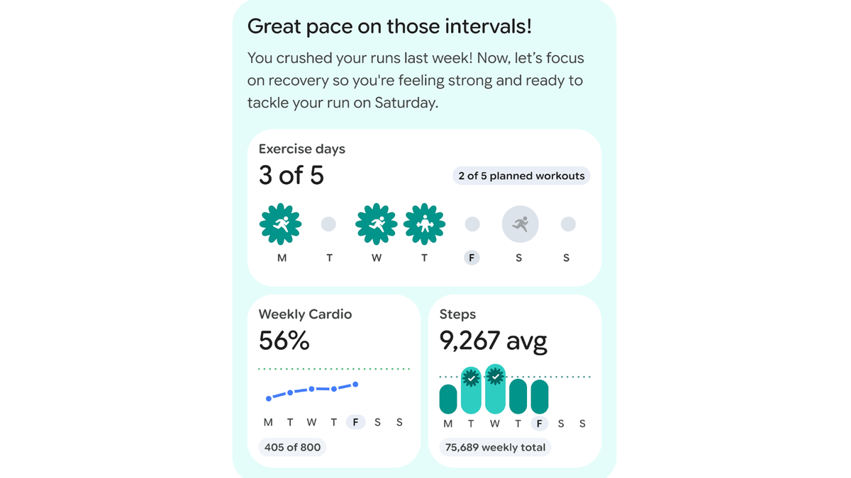 Rolling out in Public Preview tomorrow, the Fitbit Personal Health Coach will show the same health and fitness data as before — like Cardio Load, Steps, Daily Readiness, Sleep Score, and more — but in easily digestible widget form, emphasizing weekly or monthly trends.