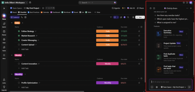 2. ClickUp — AI Project Management Tool for Adaptive Workflows